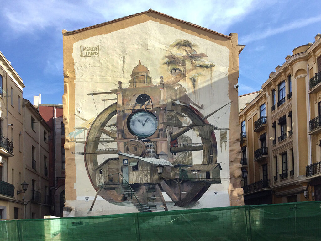 Bisher gibt es 36 große Wandgemälde, die Fassaden und Trennmauern schmücken und über verschiedenen Teile der Stadt verteilt sind. Das Foto zeigt Urbane Kunst im Stadtzentrum von Zamora