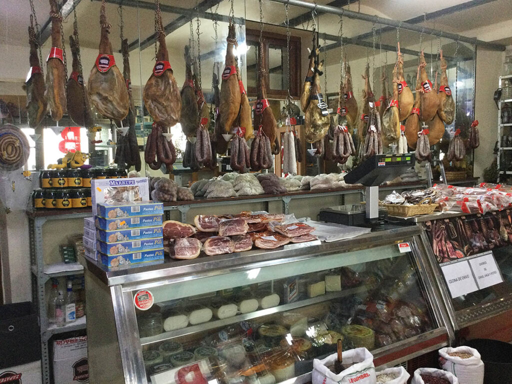Eine halbe Stunde später öffneten wir die Tür zu einer warmen Stube. Dort verbarg sich ein Schlaraffenland! Ein Café/Restaurant war das, und ein Laden für Schinken, Käse, Wurst und Gebackenem, Leckereien aus der Gegend, Andenken und vieles mehr.