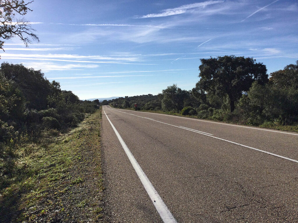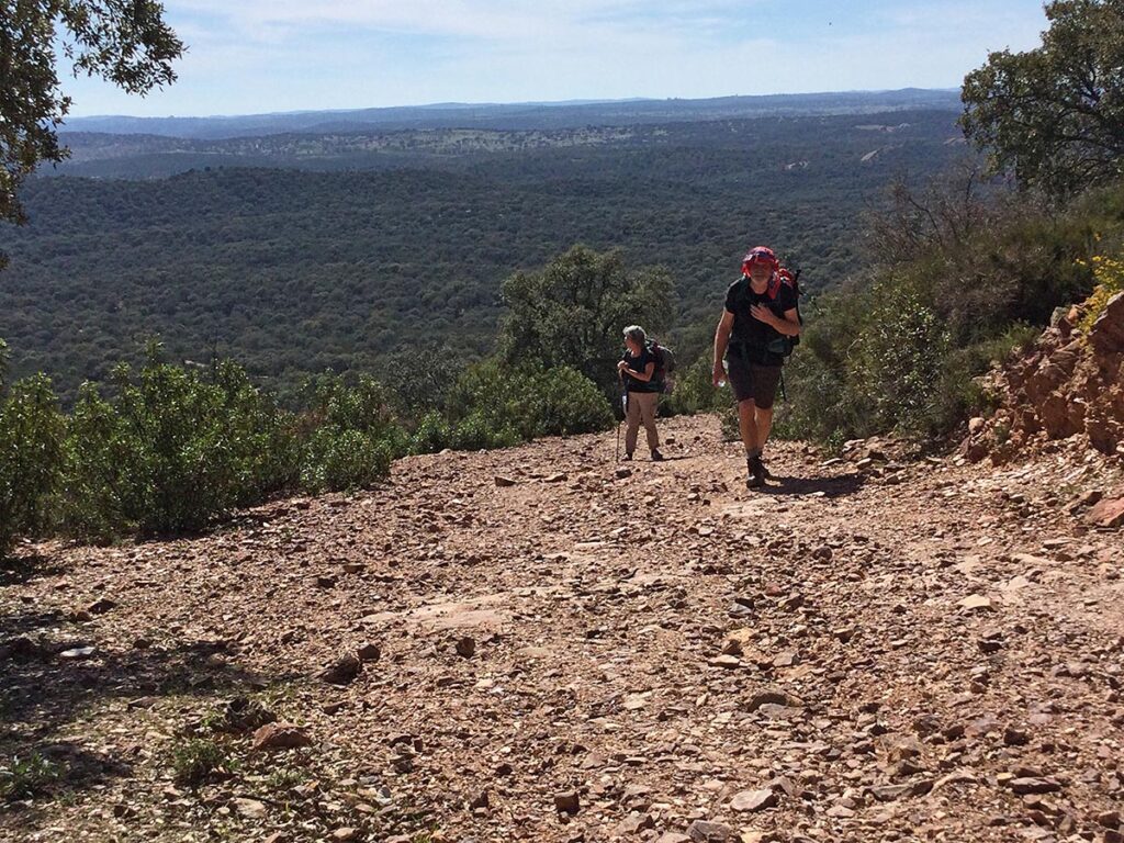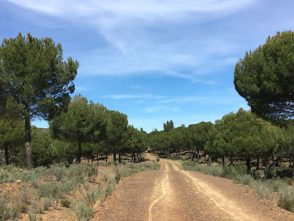 Die Via de la Plata führte heute durch den ‚Parque Natural Sierra Norte‘, ein Naturpark mit vielen Korkeichen und anderen hier ansässigen Bäumen. Zum Parkeingang sind es von Castilblanco de los Arroyos 16 km auf dem Seitenstreifen einer wenig befahrenen Strasse. Der Weg durch den Park und hoch nach Almaden de la Plata ist fast noch einmal so lang. Unterwegs gibt es keine Möglichkeit, etwas zu Essen oder zu Trinken zu kaufen. Das ist eine Herausforderung für den Jakobspilger. Der Tag ist lang und wegen des ansteigenden Terrains auch körperlich sehr anstrengend.