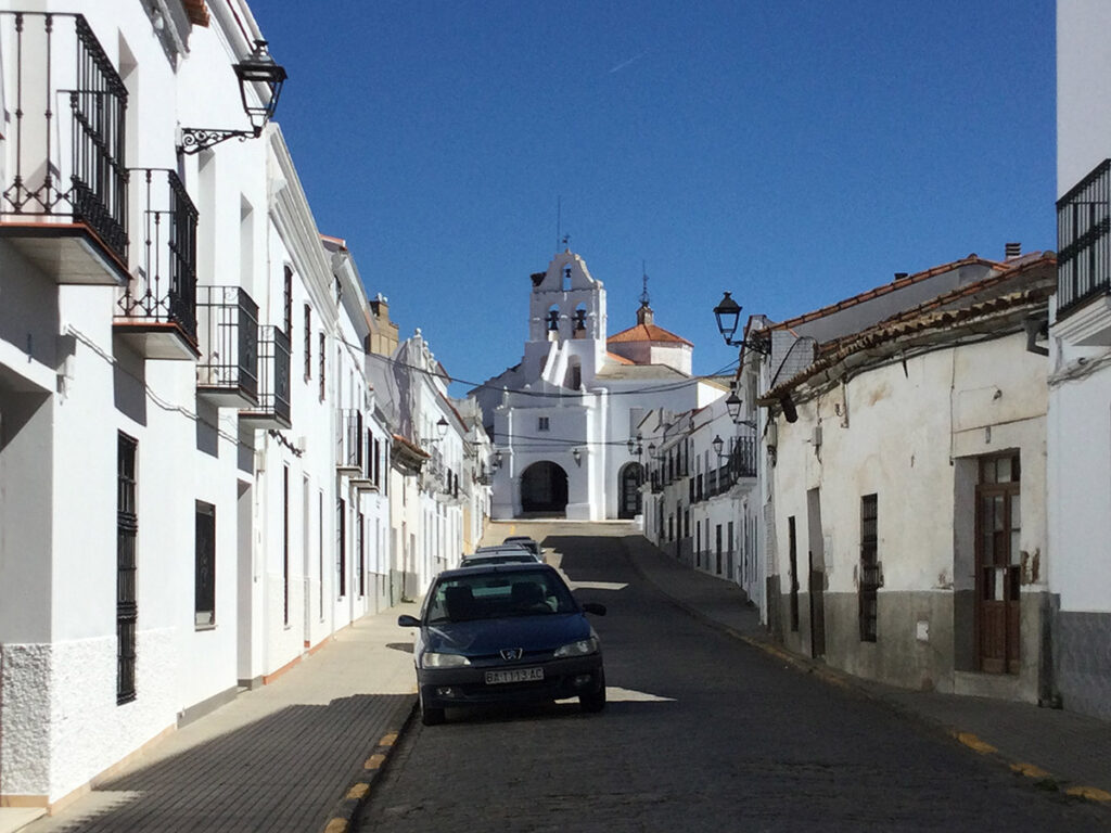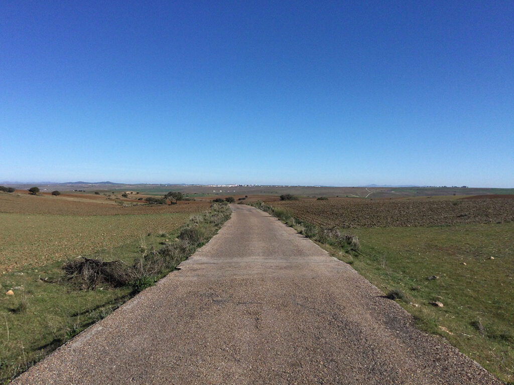 Irgendwann konnte ich endlich mein Etappenziel sehen, aber bis dahin war es noch weit. Ich war glücklich, als ich endlich den Rand von Fuente de Cantos erreichte und ich im Schatten der Häuser ins Städtchens gelaufen bin.