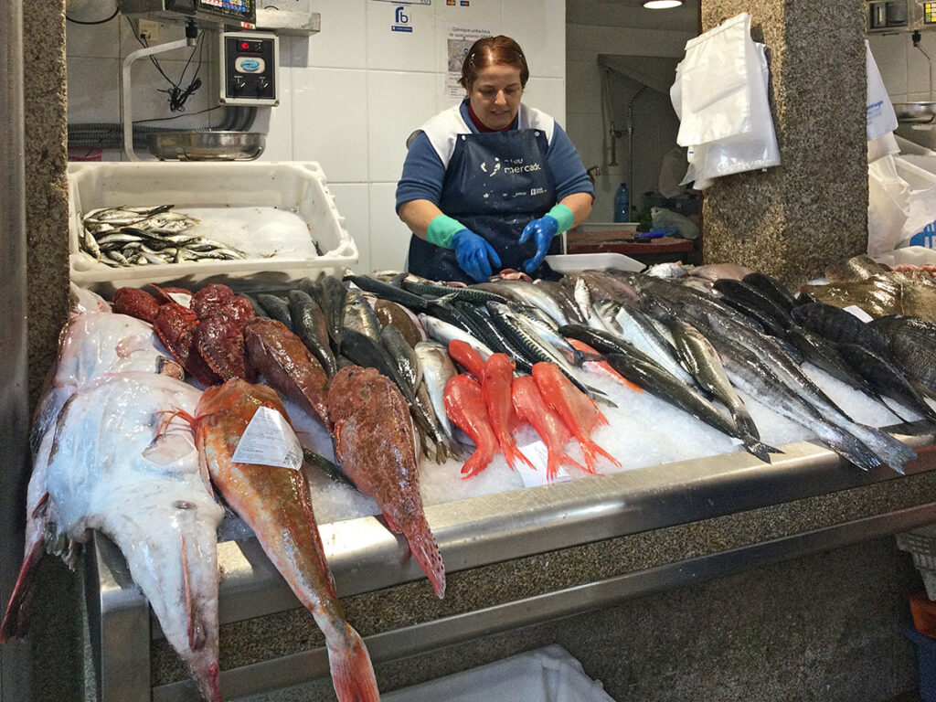 Bis 10 Uhr war die Altstadt sehr verschlafen. Nach dem Öffnen der Geschäfte erwachte überall das Leben. Ein Bummel durch die Markthallen – die Waren sortiert nach Fisch, Fleisch, Wurst, Käse, Gemüse und Obst – zeigte eindrucksvoll den Reichtum und die Fruchtbarkeit von Nordwestspanien. Wie schon in Cadiz, haben mich auch hier die verschiedenen Meerestiere sehr fasziniert.