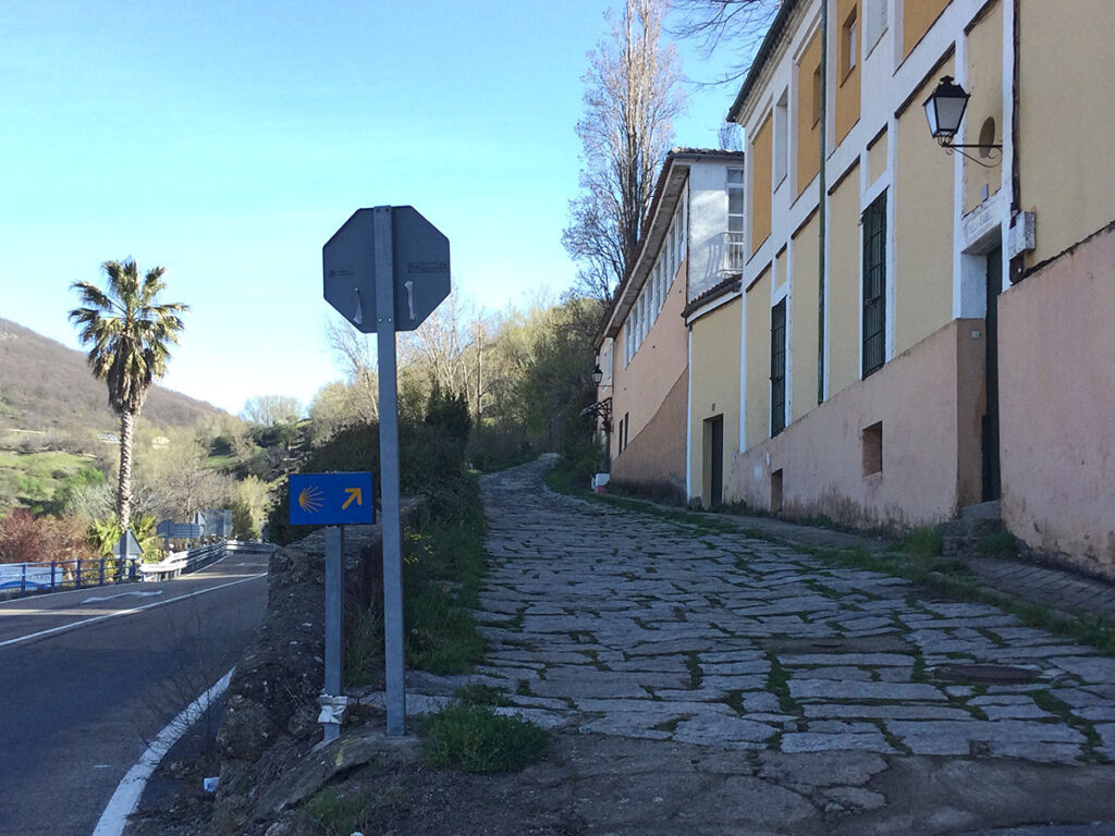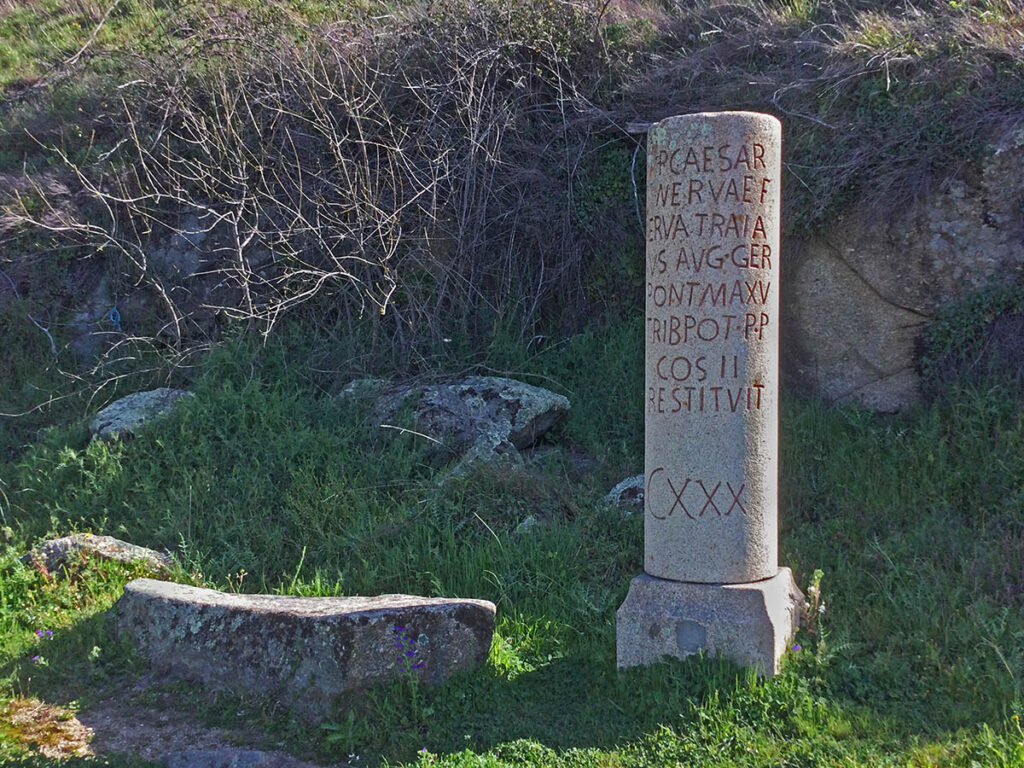 Der steil ansteigende Weg aus dem Ort verlief auf einem gut erhaltenen Stück des Römischen Handelswegs, der die Via de la Plata einmal war. Sogar Distanzsäulen mit Inschriften (Miliarien) gab es dort zu sehen.
