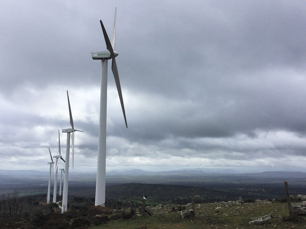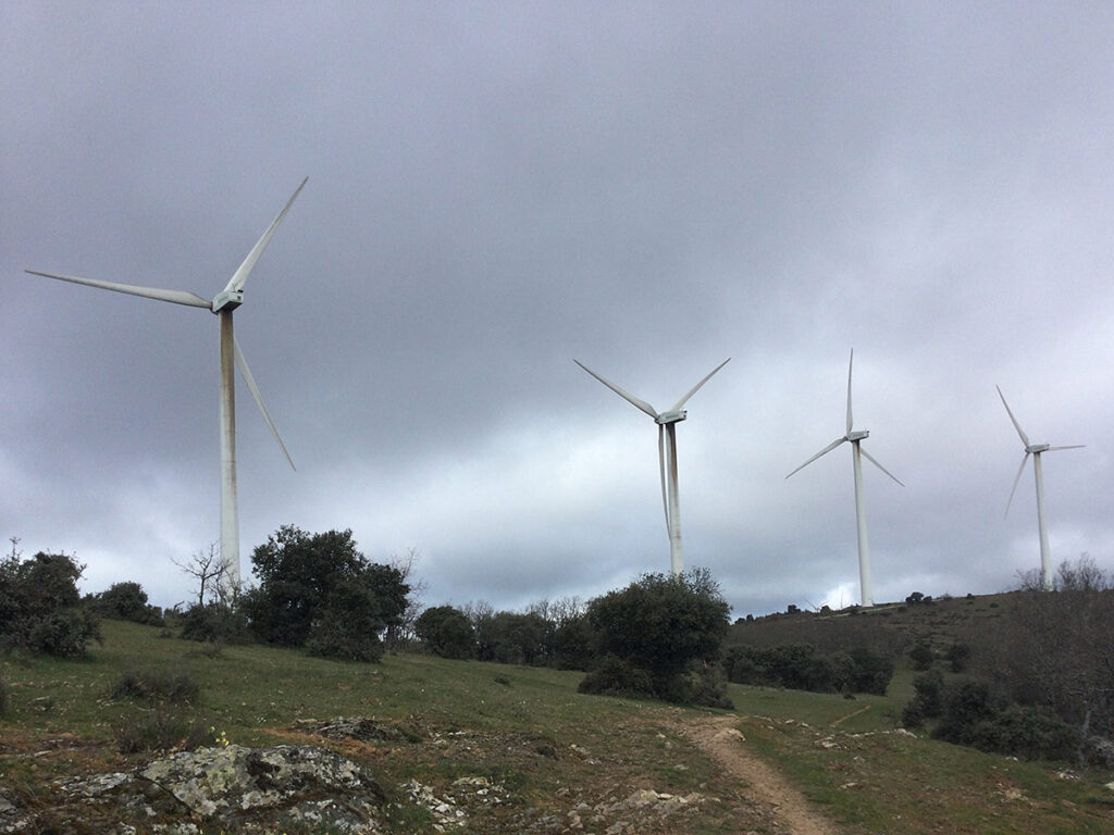 Auf der Bergkette ‚Sierra de la Duena‘ stehen viele Windräder. Der Aufstieg dort hoch war eine schweisstreibende Angelegenheit und dauerte bis mittags.